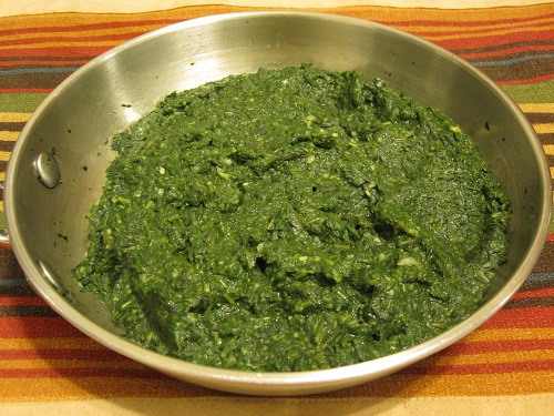 用一個小的平底鍋,放入豬油二湯匙,用中火把油鍋加熱,把已經攪拌均勻的空心菜泥,放進熱油鍋裡和豬油一起加熱到滾,需要一直攪拌才不會燒焦,請試一試味道就可以上桌。